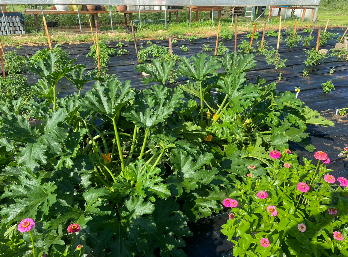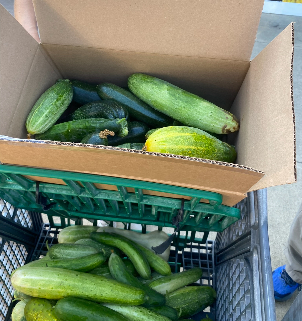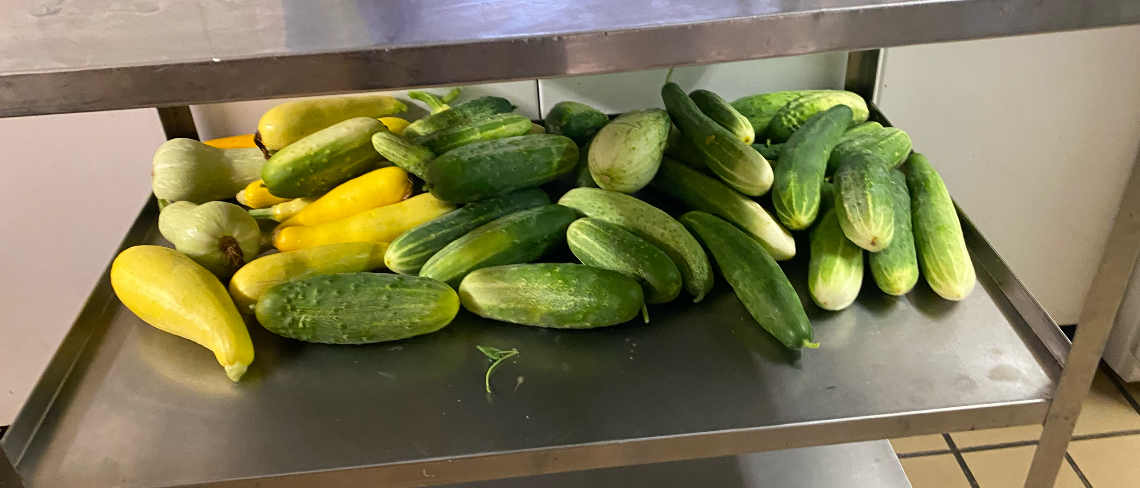 Photos of the garden from the early-middle months of the summer! Many zucchinis, squash, and cucumbers have been harvested and the zinnias are thriving! Harvested vegetables have recently been donated to the Open Door Food Pantry and the Community Meal Center. On July 2nd, HUGS donated 58.45 pounds of cabbage, cucumbers and zucchini to Open Door Food Pantry and another 87 pounds of vegetables on July 15th! A large harvest was given to the Community Meal Center on July 10th to be used in hot meals made for community members.Â