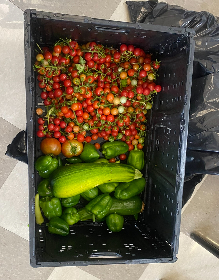health disparities through education and access to nutritious foods, especially in underserved communities. Through the USDA Farm to School Planning Grant received in 2023, HUGS has built 2 courtyard gardens at the New Miami School District and participated in both traditional and hydroponic gardening with the students. 16 hydroponic towers were also placed in 8 other local schools. Hydroponic towers involve growing produce using nutrient rich water rather than soil. This summer, HUGS has participated in Garden Club with students at New Miami elementary school. Students have gotten to help with the gardening, complete garden-related projects, and do taste testing using fresh fruits and vegetables from the garden. Here are a few photos from New Miami’s gardening this summer! They show students painting their “dream garden” and doing a salad taste testing as well as a recent harvest from their gardens.